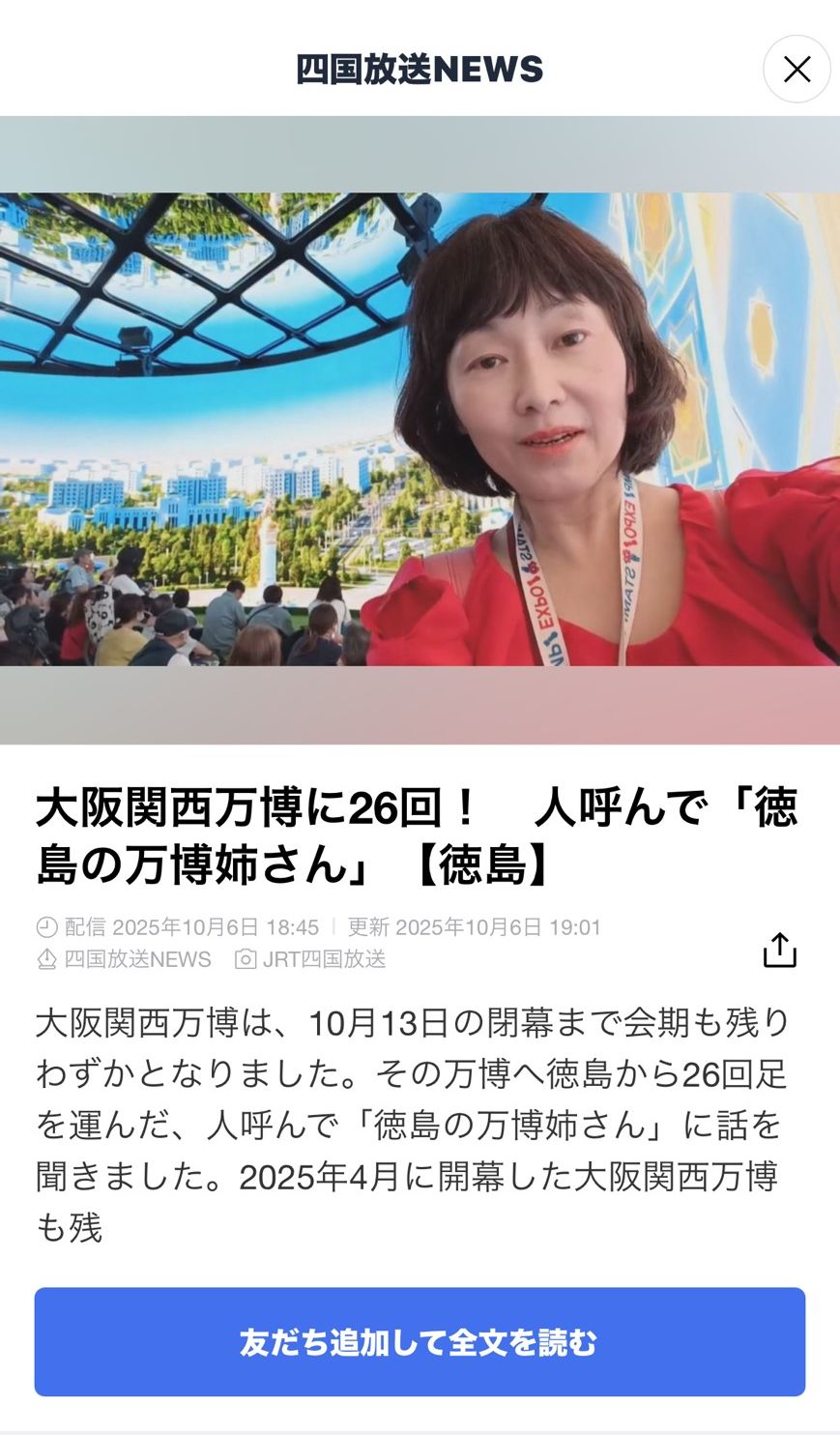 2025.10.6JRT四国放送様「フォーカス徳島」にて徳島の万博姉さんとして紹介していただきました
