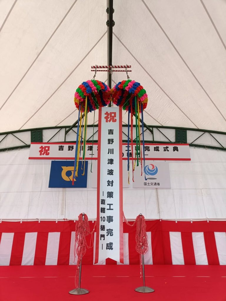 平成22年より工事がすすめられていた徳島市川内町の榎瀬川樋門が完成し、吉野川津波対策工事完成式典が開催され司会を担当いたしました。