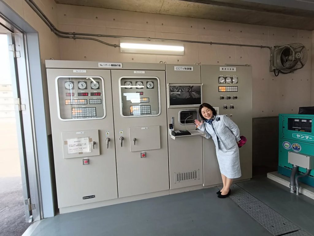 普段なかなか見ることのできない榎瀬川樋門操作室も開放され内部も見学できました。貴重です。写真をとらせていただきました。こうして生命や財産を守るための樋門が完成し、関係者のみなさんがいざというときに守ってくれていることを実感しました。樋門は遠隔で開閉操作を行うことができ、徳島県沿岸に津波警報、大津波警報が発令された場合には自動でゲートが閉まるシステムも導入されています。